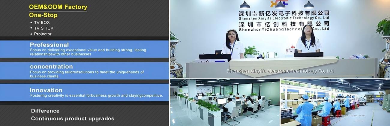 Shenzhen Xinyifa Electronic Technology Co., Ltd. was established on August 6, 2021, the company’s main projection equipment and TV box; Film and television recording equipment manufacturing, the company is an integration of industry and trade, and has its own strength of large factories. He has been deeply involved in the industry for 10 years, has R&D strength, and has also obtained many patents and certifications. The company focuses on domestic and foreign markets, the current products are sold to the United States, France, theUnited Kingdom, Switzerland and other European and American countries and global markets, we have more than 10 years of rich experience in customized projects, and can be customized ODM and OEM according to project requirements. The company strictly implements the 1S09001 quality management system through wells, and all products have passed CE, ROHS. FCC and other international safety certifications, and some products have passed UL. TUV and PSE certification, we trust each other, each other Respect as the cornerstone, to develop, innovation to increase efficiency, market-oriented, quality and integrity as a guarantee, and constantly integrate resources, to create harmony and win-win.