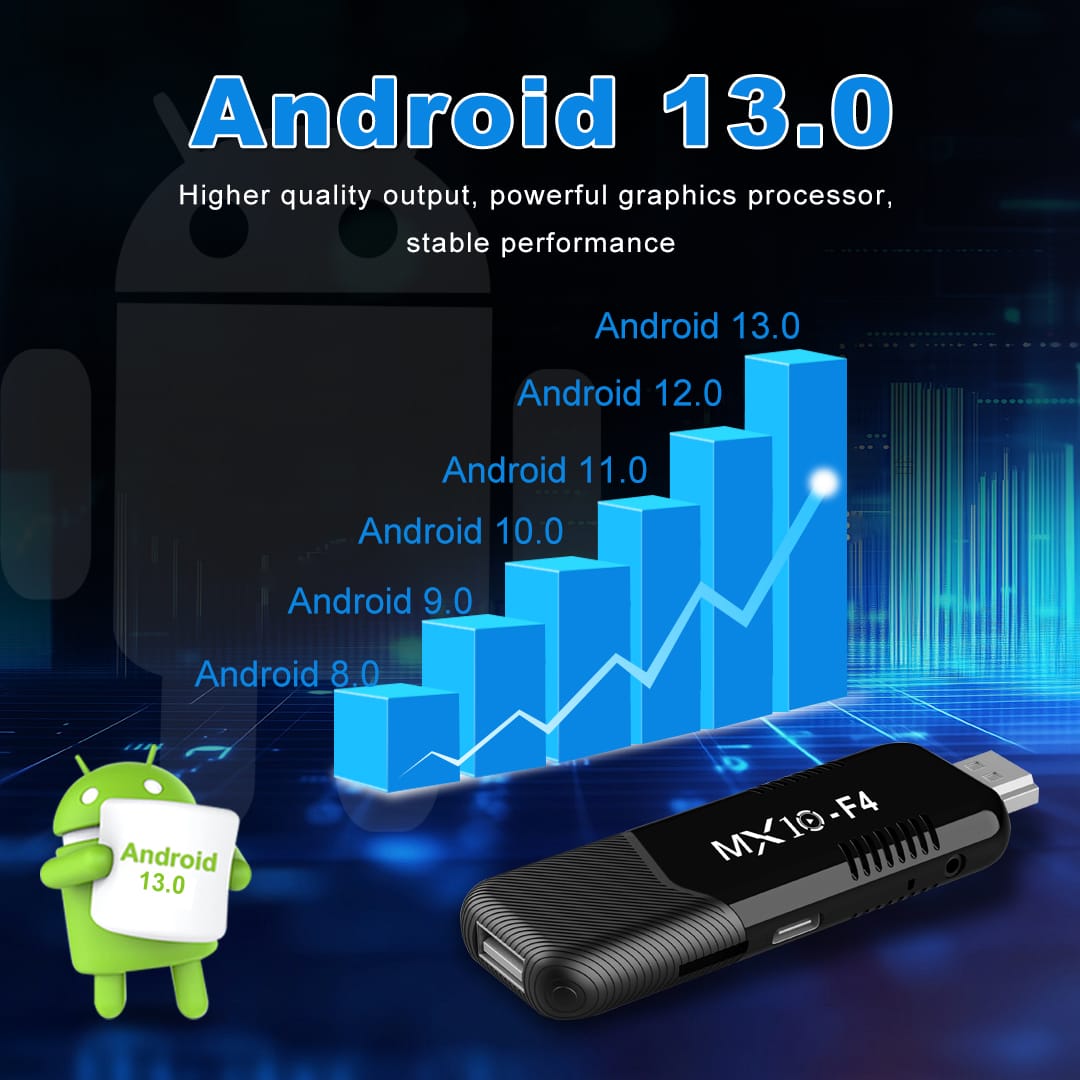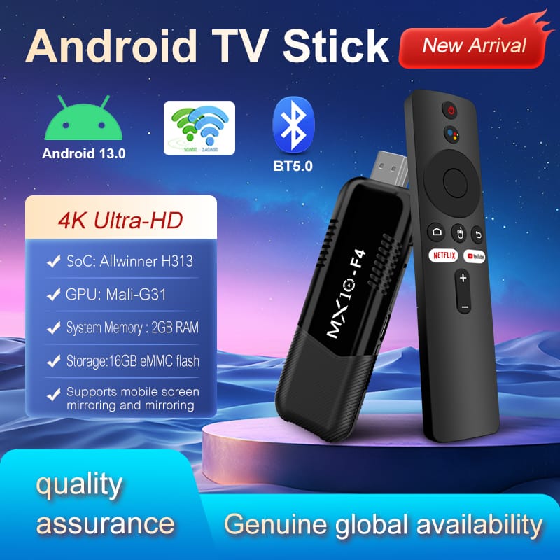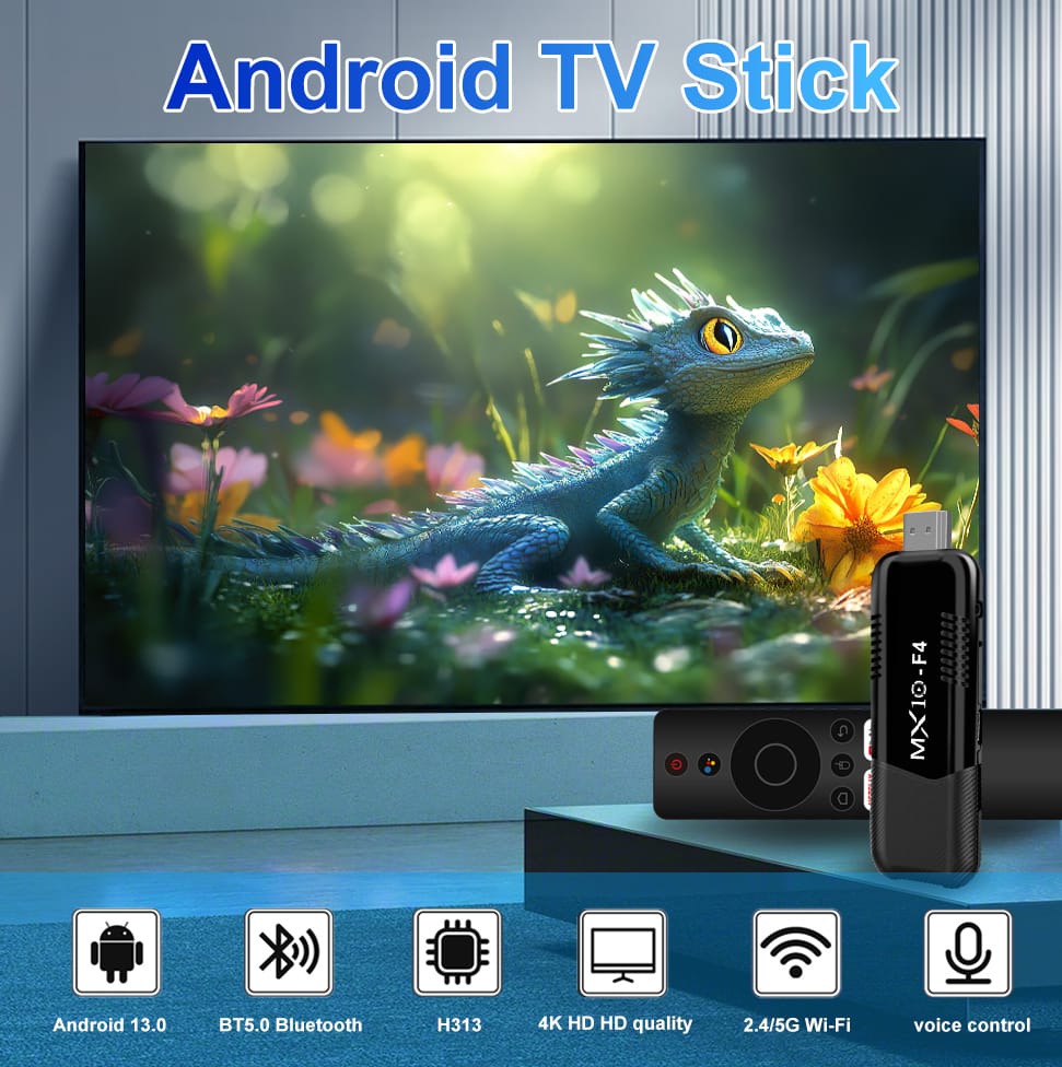 2025 Newest Allwinner H313 Quad Core Android 13.0 2GB RAM 16GB ROM MX10 F4 TV Stick From China Supports 4K WIFI6 & BT 5.0