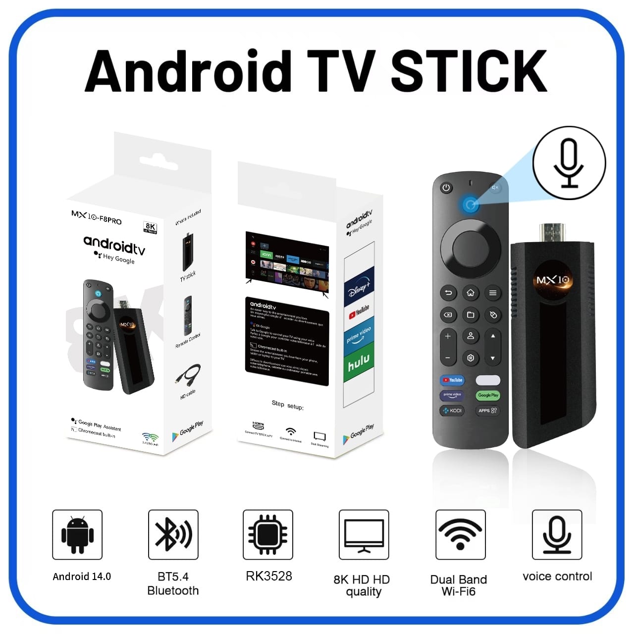 2025 Xuper TV Stick Global Version Hot Mortal MX10 F8PRO Android14 TV Stick RK3528 Wifi2.4G Wholesale Multi Language Settop Box