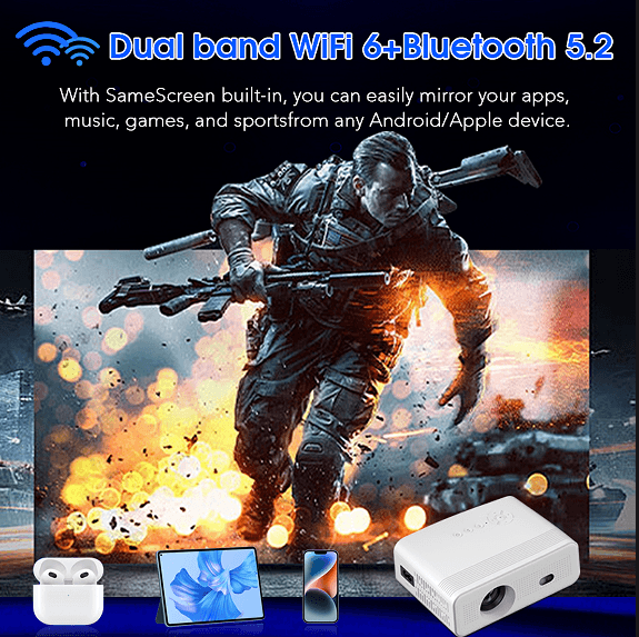 Outdoor Portable Smart Projector 4K Android 11 Google App HD 1080P Video Wifi 6 Home Theater 2024 Led Projector