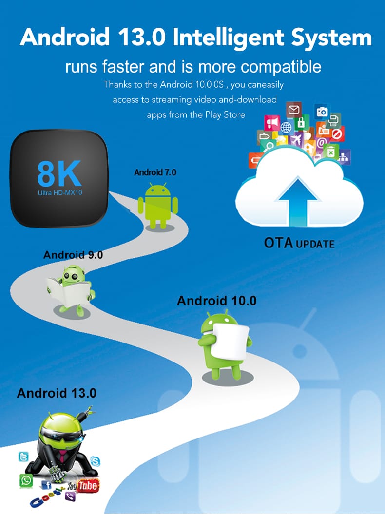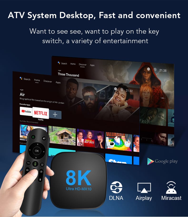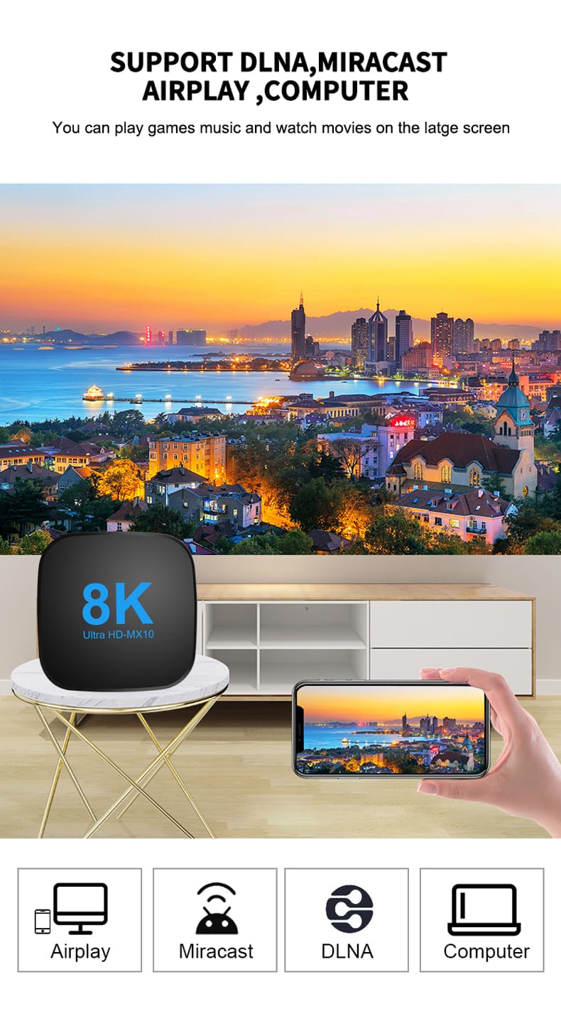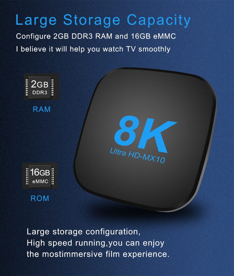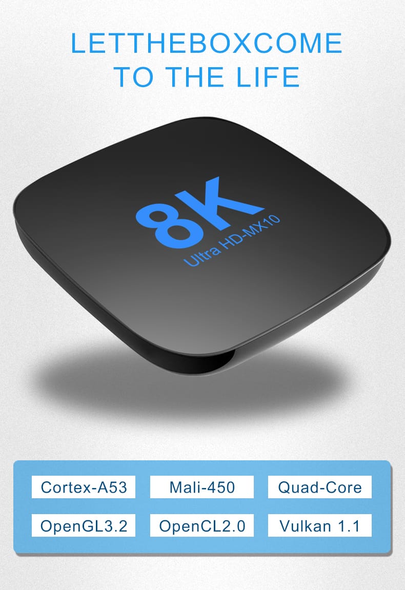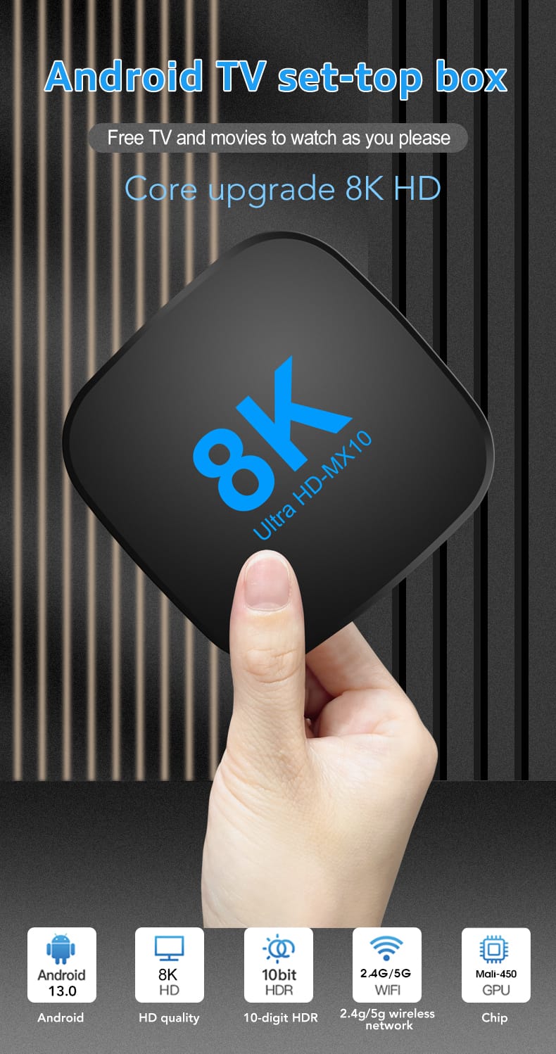 For MX10 K2 Smart TV Box with Android 13.0 Quad Core Processor 1.5GB RAM/8GB ROM WiFi 5G/6G HD Network Player for Home Movie