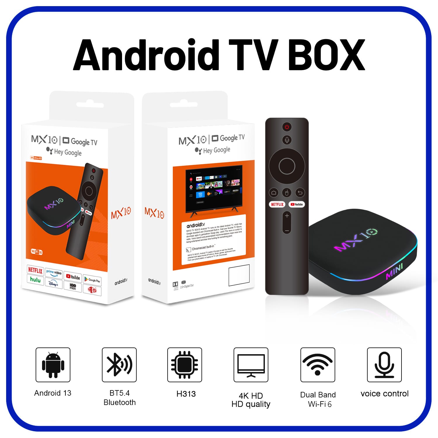 Hot Lifetime Free MX10-Z4 Super TV Box Smart Android 13 TV Box WiFi6 Allwinner H313 With AV and 4K Video Output BT Voice Remote