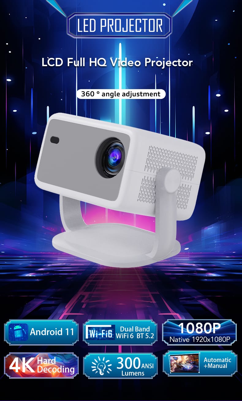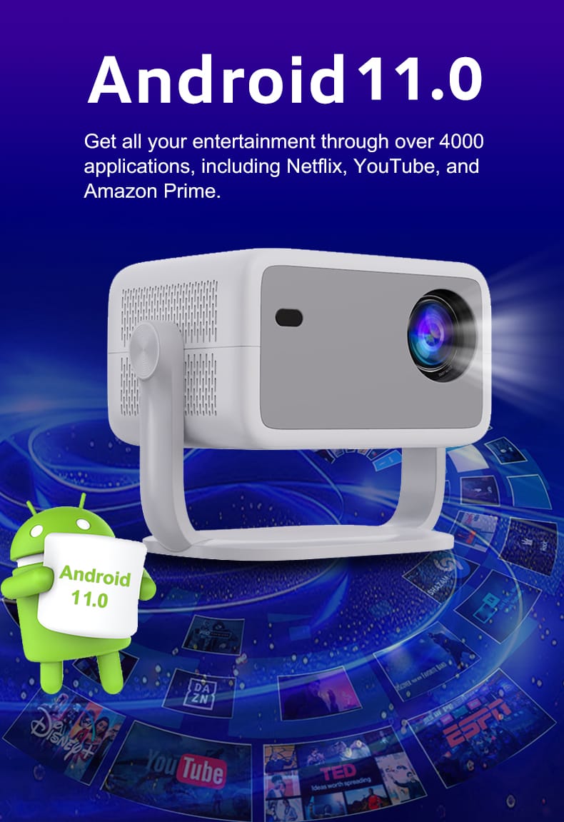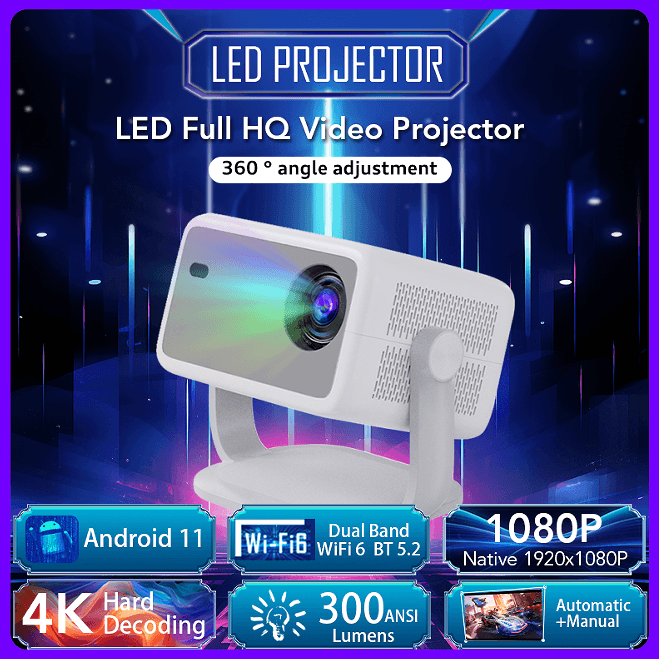 Outdoor Portable Smart Projector 4K Android 11 Google App HD 1080P Video Wifi 6 Home Theater 2024 Led Projector