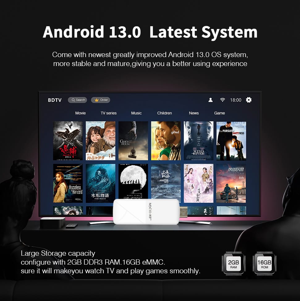 Smart TV Stick MX10 K9PRO Android 13 Dual-Band WiFi2.4G+5G BT5.0 Support Voice Control 2GB+16GB Chromecast TV Stick