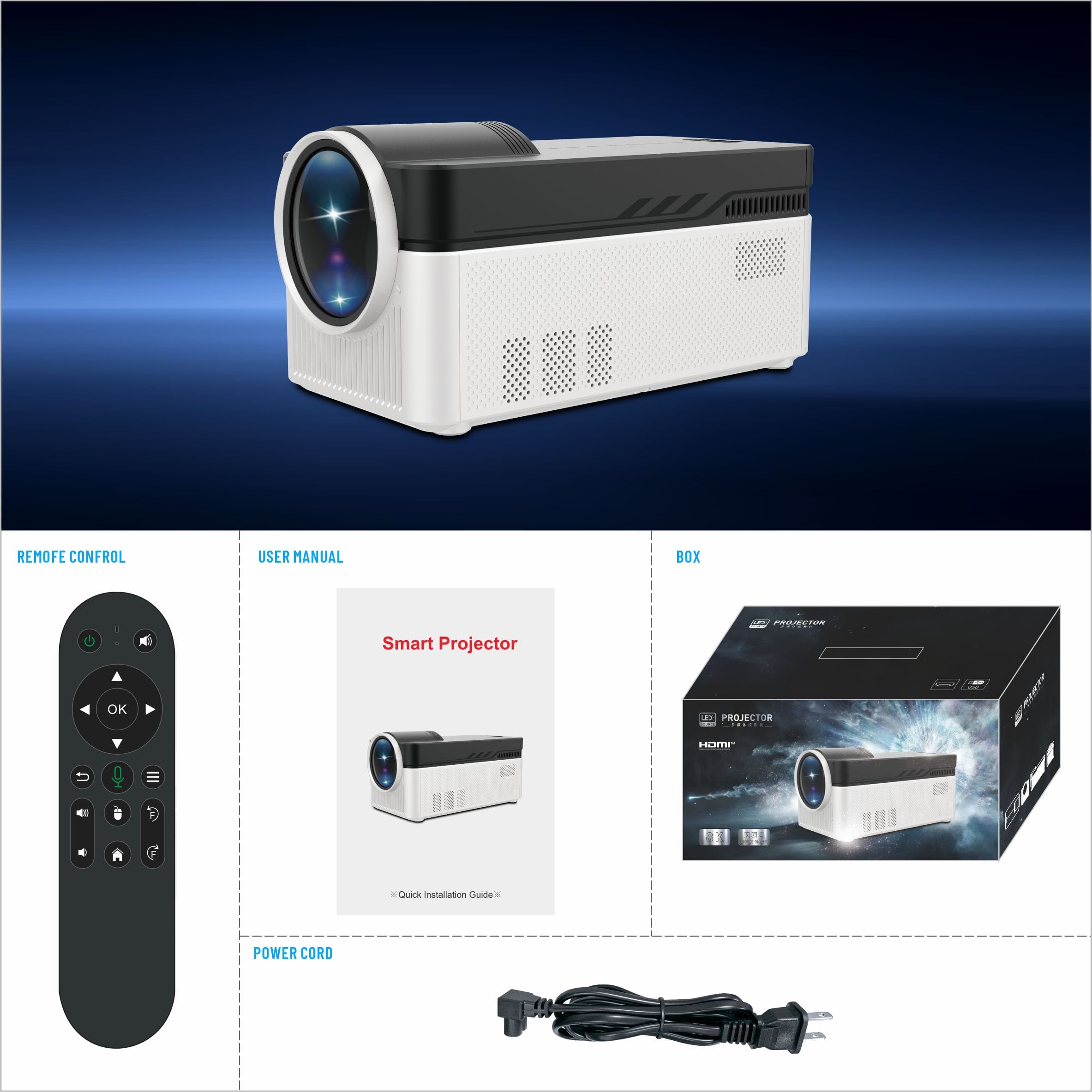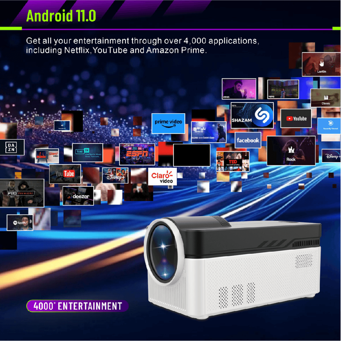 Outdoor Portable Smart Projector 4K Android 11 Google App HD 1080P Video Wifi 6 Home Theater 2024 Led Projector
